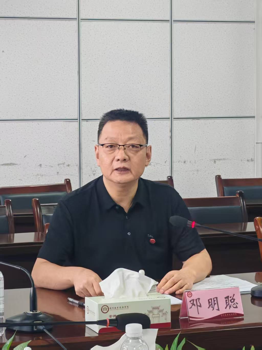 邓明聪代表九三学社泸州市委会向新当选班子表示祝贺。他指出,过去五年,泸州职业技术学院支社在服务地方发展、助力学校建设中成绩显著,展现了民主党派基层组织的担当。他对新一届支社提出三点要求:一要坚持正确政治方向,把学习贯彻中共二十大精神与九三学社章程结合起来,确保支社工作始终与市委、市政府及学校党委同频共振;二要发挥界别优势,立足职业教育领域,深入调研、精准建言,为泸州职业教育高质量发展提供更多“九三智慧”;三要加强自身建设,规范组织生活,激发社员活力,为九三学社泸州市委会工作整体提升贡献力量。