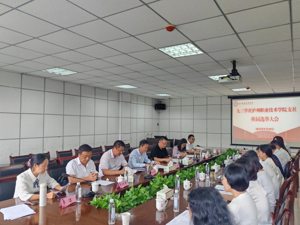 9月29日,九三学社泸州职业技术学院支社召开换届选举大会。九三学社泸州市委员会专职副主委兼秘书长邓明聪,九三学社泸州市委员会四级调研员张利彬,泸州职业技术学院党委常委、副院长梁杰,党委常委、统战部部长洪兴华出席会议。