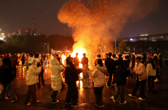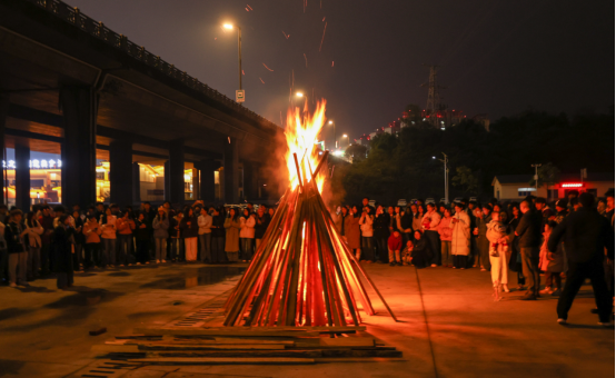 当夜幕降临,活动的高潮——篝火晚会热烈开启。熊熊燃起的篝火,不仅照亮了夜空,更点燃了每一位在场师生心中的热情。彝族同学们身着绚丽的民族服饰,围着篝火跳起了欢快的达体舞。他们热情地邀请在场的师生加入舞队,手拉手,肩并肩,歌声、笑声、脚步声汇成一片欢乐的海洋。这一刻,语言和民族的界限被打破,唯有真挚的情谊与对美好生活的共同向往在火光中交融升华